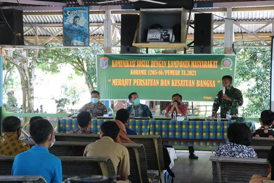 Sintang – Guna menjalin hubungan yang baik dengan warga di wilayah binaannya, Koramil 16/Pemuat gelar Komunikasi Sosial (Komsos) dengan Komponen Masyarakat bertempat di lokasi Wisata Matuari, Desa Pemuar, Kecamatan Belimbing, Melawi, Sabtu (10/04/2021).