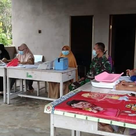 Babinsa 1208-07/Sekura Sertu Suherdi menghadiri kegiatan Posyandu balita yang bertempat di Dusun Karti, Desa Tanjung Keracut, Kec. Teluk Keramat, Kab. Sambas. (13/04/2021)