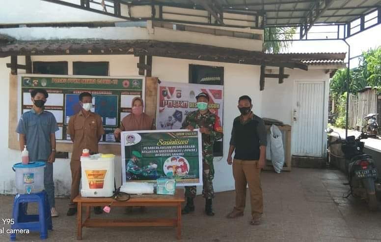 Dalam hal ini, kami yang tergabung dalam Satgas Tangkal Covid-19 dalam pelaksanaannya memberikan sosialisasi dan himbauan guna mengugah kesadaran dan peran aktif masyarakat dalam menerapkan protokol kesehatan dengan 5M (memakai masker, mencuci tangan dengan sabun, menjaga jarak, menjauhi kerumunan, dan mengurangi mobilitas) guna mencegah penularan covid-19 diwilayah binaan,” jelasnya Babinsa.