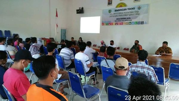 Bengkayang – Babinsa Koramil 1202-03/Sry Serda Pujianto Hadiri Bimbingan Teknis Kelompok Kerja Relawan SDGs (Sustainable Development Goals) di Aula Permarus Desa Rukma Jaya, Kecamatan Sungai Raya Kepulauan, Kabupaten Bengkayang, Sabtu (24/4/21).