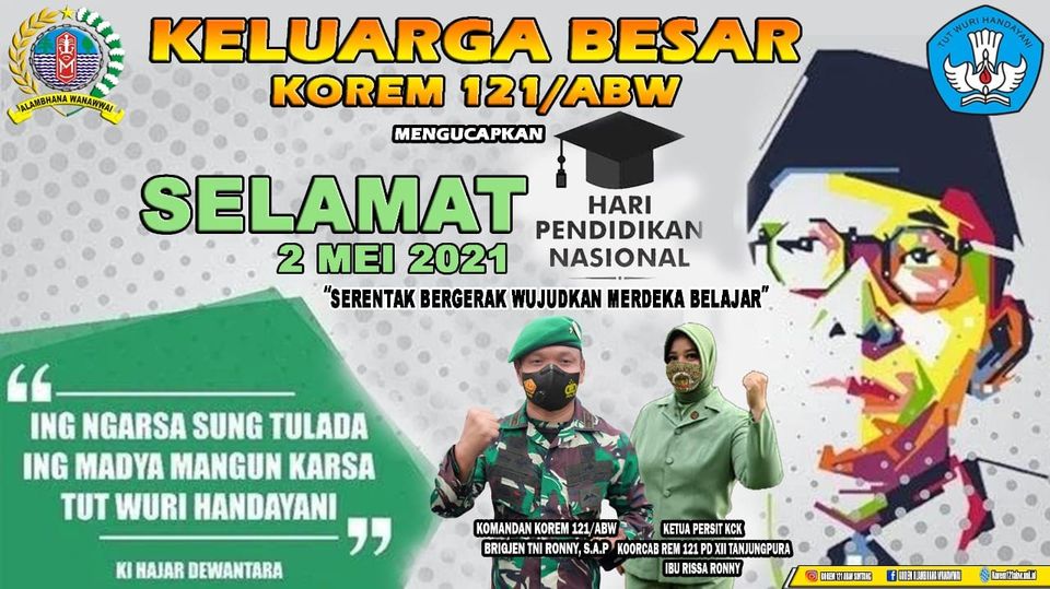 Keluarga Besar KOREM 121/Abw Mengucapkan Selamat Hari Pendidikan Nasional 2 Mei 2021 “Serentak Bergerak Wujudkan Merdeka Belajar” 2 Mei 2021 oleh Redaksi Korem 121/abw