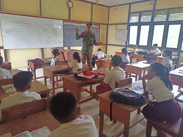 “Salah satu peran prajurit diperbatasan selain sebagai Garda terdepan menjaga kedaulatan NKRI, namun juga turut ikut serta dalam memajukan pendidikan diwilayah perbatasan, seperti halnya yang dilakukan oleh anggota Pos Kampung Jasa dengan berperan menjadi tenaga pendidik untuk membantu sekolah yang kekurangan Guru diwilayah perbatasan,” Ungkap Dansatgas.