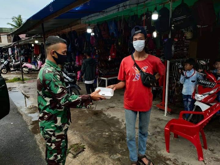 Ketapang – Dibulan suci Ramadhan 1442 H kali ini, Babinsa Koramil 12/Mhu,Kodim 1203/Ktp berbagi nasi kotak untuk berbuka puasa kepada warga binaanya, yang berlokasi di Desa kelurahan tengah, Kec. Delta Pawan, Kab. Ketapang, Jum’at (07/05/2021).