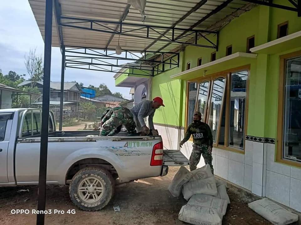 Ketapang – Suatu bentuk kemanunggalan TNI di masa pandemi dibuktikan oleh Babinsa Koramil 1203-14/Jelai Hulu, Kodim 1203/Ktp dengan membantu warga melaksanakan karya bakti perbaikan serta pengecoran Masjid Al-Iman menyambut Hari Raya Idul Fitri 1442 H di Desa Periangan Kec. Jelai Hulu Kab. Ketapang. Rabu (7/5/2021)