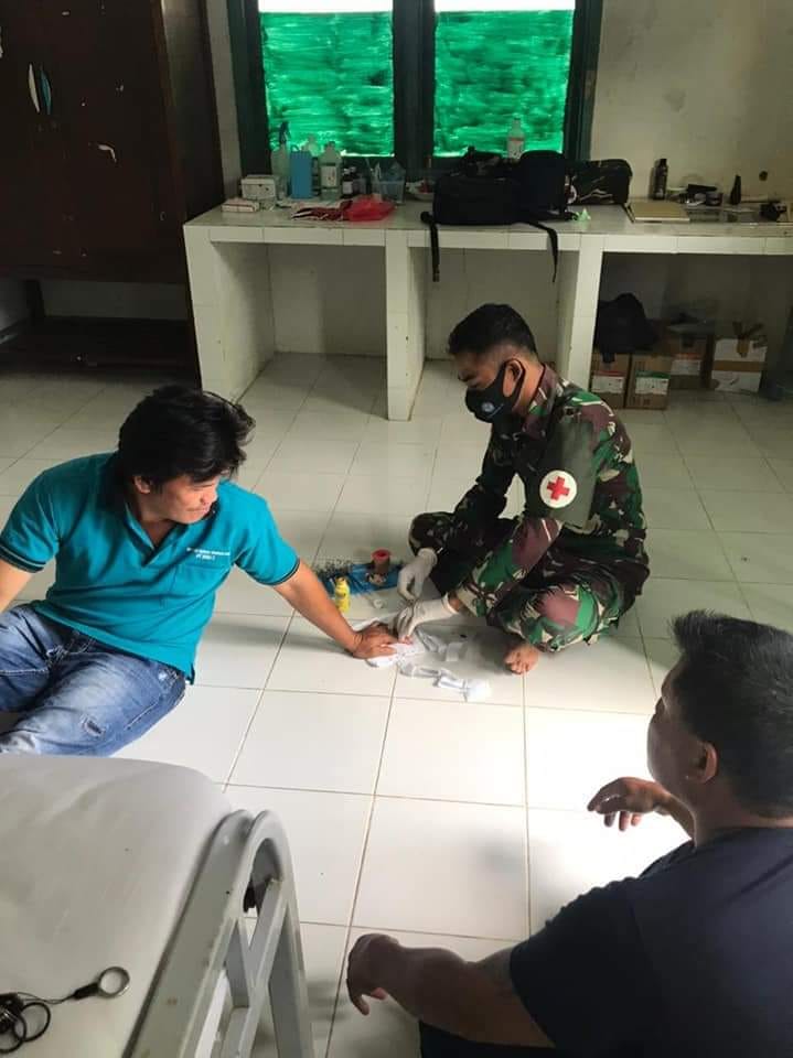 “Namun melihat Bapak Lugap berjalan sambil menahan rasa sakit di bagian tangannya, anggota Pos langsung bertanya kepada warga tersebut dan ternyata tangan dari Bapak Lugap tertusuk duri Sawit saat memanen Sawit. tanpa berfikir panjang anggota Pos langsung membawa Bapak Lugap ke Pos dan segera mengobati luka Bapak Lugap,” Ucap Danpos.