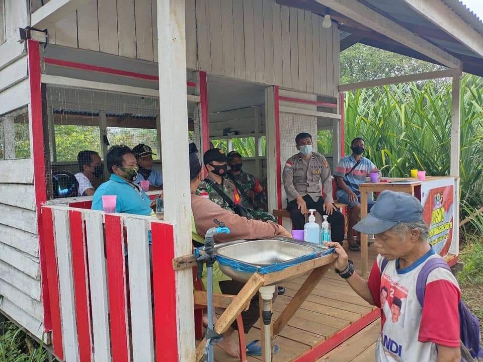 Batang Lupar – Anggota Babinsa Koramil 1206-03 / Batang Lupar bersama anggota Polsek Batang Lupar di Pos Pengaman Pertigaan Jalan Lintas Utara dalam rangka pengamanan Lebaran Idul Fitri, Jumat (14/05/21).