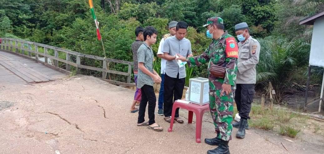 Sintang- Personil Koramil 1205-05/Senaning Amankan pelaksanaan sholat Idul Fitri sembari ajak warga terapkan protokol kesehatan pada pagi kamis (13/05/2021).