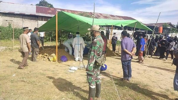 Proses pemakaman dilaksanakan dengan lancar oleh Petugas pemakaman. Kehadiran Babinsa Koramil 1204 – 02/Sekayam dalam setiap kegiatan pemakaman dengan protokol covid 19 ini merupakan upaya turut mencegah warga agar tidak mendekat dan menjauhi kerumunan serta bentuk antisipasi adanya berbagai hal seperti penolakan dari warga disekitar tempat pemakaman