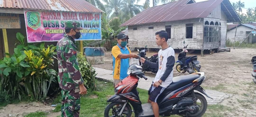 Sambas – Selasa (18/5/21) Anggota Koramil 1208-04/Jawai Kopda Faisal bersama Perangakat Desa melaksanakan kegiatan pengecekan dan pengawasan Posko PPKM Mikro Covid-19 Rt/Rw di Desa Sungai Nilam Kec. Jawai, Kab. Sambas.