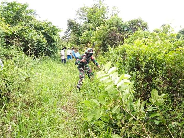 ” Karya bakti kali ini berupa pembersihan jalan tani yang menghubungkan antara desa dengan ladang milik masyarakat ” tutur kopda trisno