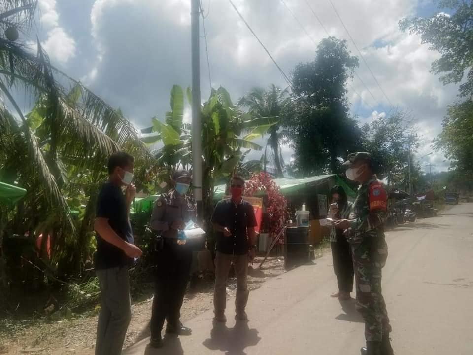 Mempawah – Babinsa Bukit Batu Serda Hamdani dan Babinkamtibmas beserta aparatur Desa melaksanakan pembagian masker di jalan raya Desa Bukit Batu, Kamis (20/05/2021), kepada masyarakat yang hendak pergi ke acara pesta perkawinan.