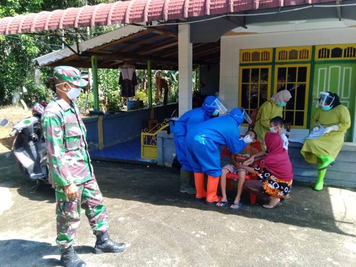 Mempawah- Guna Mencegah penyebarab Covid-19 di wilayah Kecamatan Toho, Koramil 05/Toho melaksanakan pendampingan Tes Swap Pcr tes lacak dan isolasi Puskesmas Takong Kecamatan Toho Kabupaten Mempawah. Jumat (21/05/2021).