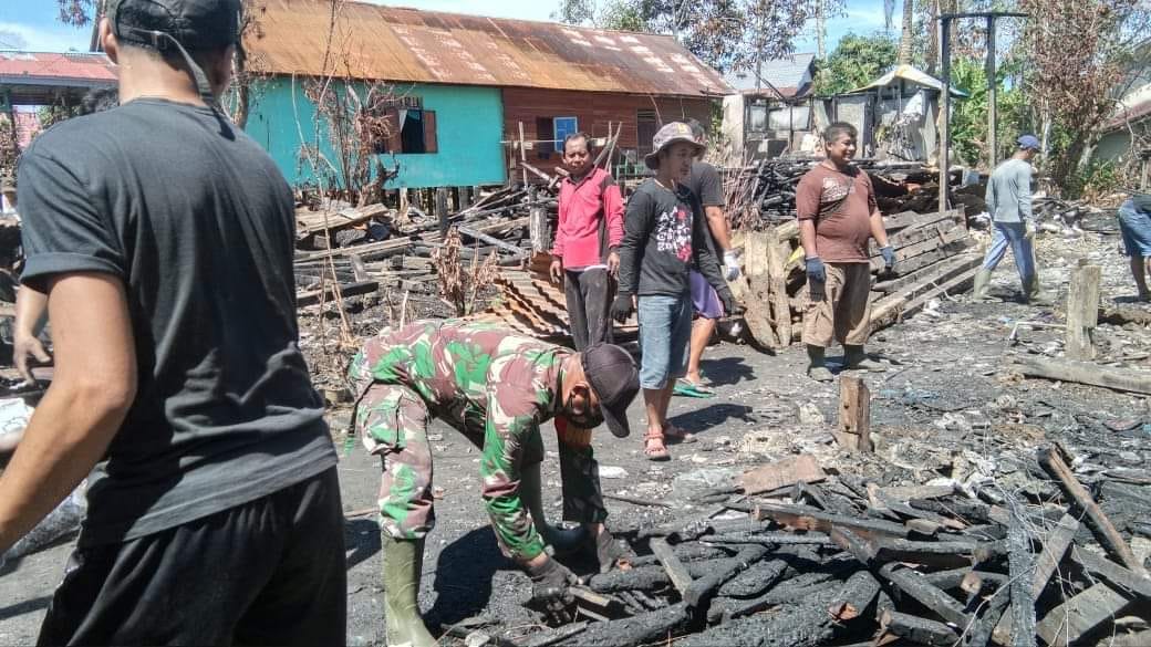 “Sebagai aparat, kami tidak tinggal diam saja atas musibah yang menimpa masyarakat di wilayah binaan. Kami datang bantu bersihkan dan amankan barang yang masih bisa digunakan”, katanya.