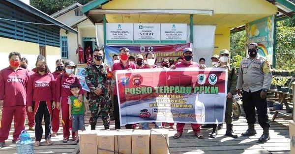 Seberuang – Guna menekan dan memutus mata rantai penyebaran Covid-19 di wilayahnya, Andreas Suhendro selaku Kepala Desa Emperiang Kecamatan Seberuang bersama Babinsa Koramil 1206-16/Seberuang membagikan sarana cuci tangan berupa Tong air/galon, ember, sabun cuci tangan dan hand sanitizer bagi warganya. Sabtu, (22/05/2021)