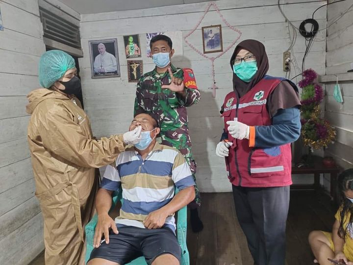 Babinsa Kuala Bahe Dampingi Petugas Swap Tes Lacak Covid-19 Ke Rumah Warga