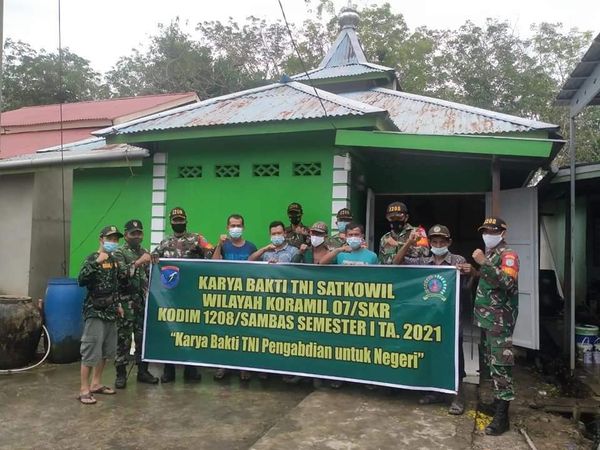Sambas – Sabtu (22-5-21) Anggota Koramil 1208-07/Sekura dipimpin lansung oleh Komandan Koramil Letnan Dua Inf Wasino, melaksanakan kegiatan Karya Bakti pengecetan Surau An – Nurrida, bertempat di Dusun Kelumpang RT/28, RW/14, Desa Sekura, Kec.Teluk Kramat, Kab. Sambas.