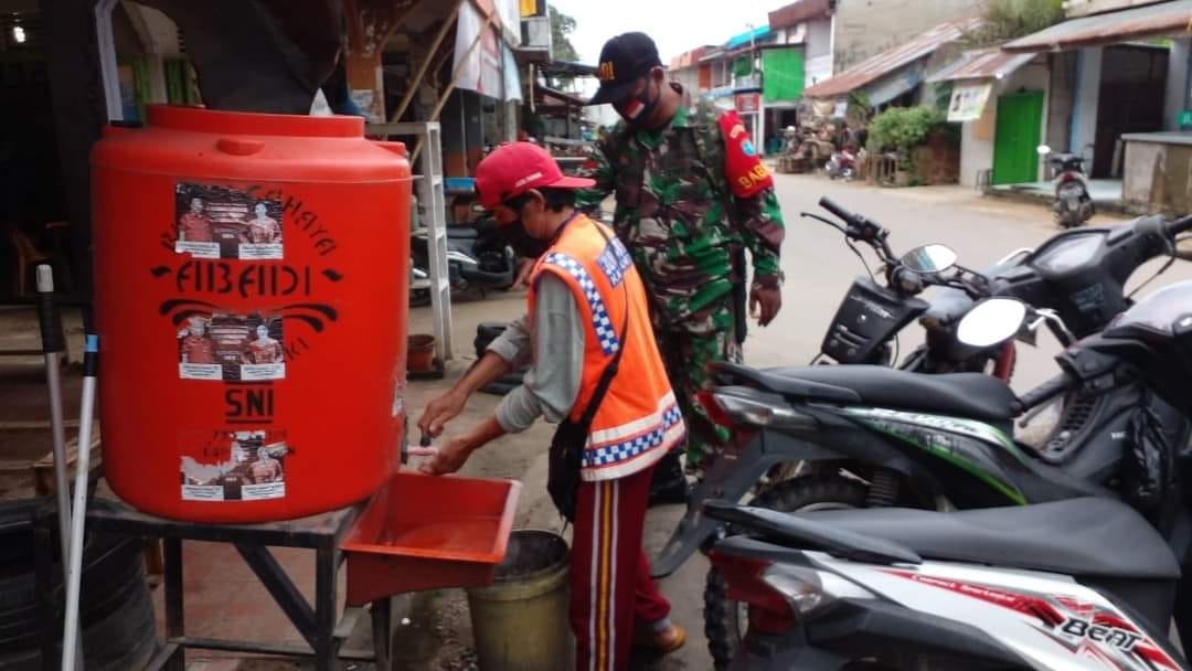 Landak – Babinsa Koramil 11/Ngabang Koptu Arisandi, melaksanakan penegakan dan pengawasan protokol kesehatan (prokes) Covid -19, Minggu (23/5/2021). Penegakan dan pengawasan tersebut dilakukan di pusat keramaian pasar yang ada di Ngabang, Kabupaten Landak.
