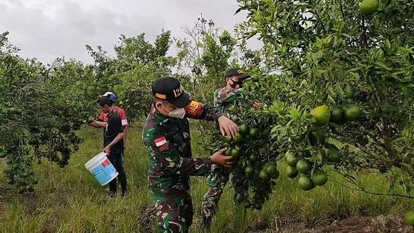 Kodim 1208/ Sambas melalui koramil 1208- 03/ Tebas, Bintara Pembina Desa ( Babinsa ) Praka zainudin bersama Serda Andre Saat berada di perkebunan jeruk bersama masyarakat dan petani jeruk di desa mak rampai, dalam mendukung pertumbuhan ekonomi masyarakat pada saat situasi pandemi Covid- 19, Buah Jeruk dapat menanganin kegiatan krisis Pendapatan Perekonomian Masyarakat, Disamping itu, buah jeruk memberikan Vitamin C bagi tubuh manusia.