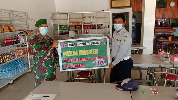 Babinsa juga siap menjadi motivator dalam memutus mata rantai penyebaran Covid -19 di masyarakat. Seperti yang dilakukan Serda Hendra Babinsa Desa Sosok Kodim 1204-11/Sosok yang rutin melaksanakan patroli dialogis bersama unsur terkait lainnya dengan sasaran ditiap Posko PPKM Mikro tingkat RT/RW setempat.
