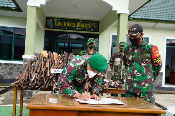 Menurut Danyonif 407/PK Letkol Inf Catur Irawan, S.I.P.,M.I.P. mengatakan,” Saya ucapkan banyak terimakasih kepada masyarakat atas kesadaran sendiri tanpa paksaan berkenan untuk menyerahkan senjata kepada kami, karena menyimpan senjata dan munisi secara illegal bisa di kenakan hukuman, dan ini sangat berbahaya,” tutur Danyonif