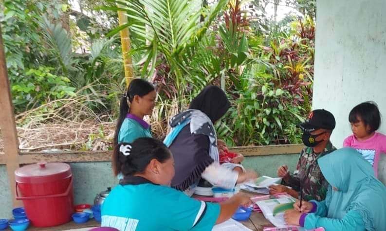 “Kami sangat terbantukan atas bapak satgas yang telah membantu kami dalam kegiatan posyandu ini,”ucap tenaga medis Bu Yuli .