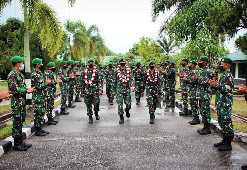 Sintang – Bertempat di Pendopo Mako Yonif 642/Kps, Komandan Batalyon Infanteri 642/Kapuas Letkol Inf Alim Mustofa memimpin langsung Acara Tradisi Penyambutan Kembali Penugasan Aparat Teritorial (Apter) dari Bumi Cendrawasih. Jum’at (30/07/2021).