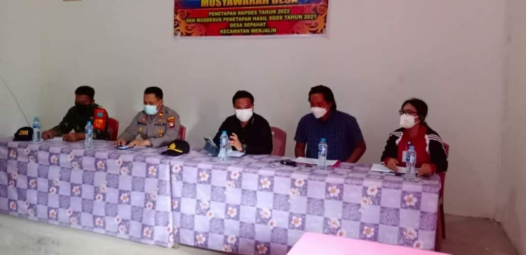 Landak-Babinsa Koramil 1201-06/Menjalin, Serda Barus bersama Satgas Covid-19 Kecamatan melaksanakan sosialisasi perpanjangan Pemberlakuan Pembatasan Kegiatan Masyarakat (PPKM) level 3 kepada Masyarakat, di Kantor Desa Sepahat, Kecamatan Menjalin, Kabupaten Landak,Sabtu(31/7/2021).