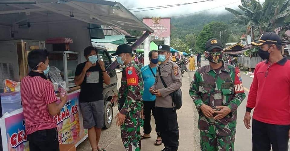 Kapuas Hulu – Kodim 1206/PSB, Koramil 1206-03/Batang Lupar, Babinsa Desa Sepandan Serka Oken memantau pelaksanan prokes di pasar Desa Sepandan, Kecamatan Batang Lupar, Kabupaten Kapuas Hulu. Jum’at, (30/07/2021).
