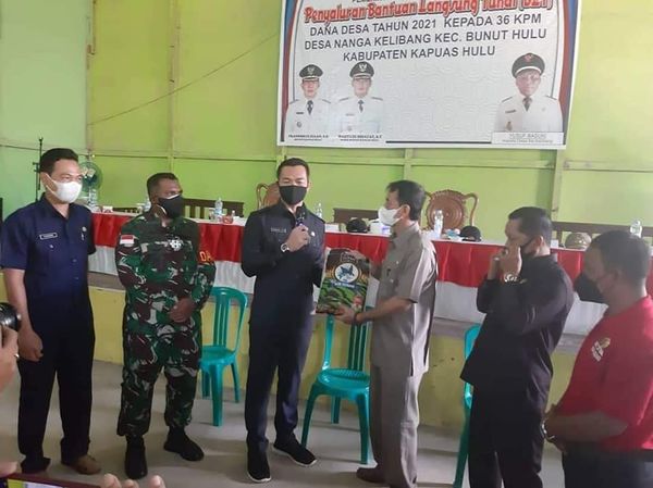 Bupati Kapuas Hulu Fransiskus Diaan S.H dan Dandim 1206/PSB Letkol Inf Jemi Oktis Oil S.I.P mendapat kehormatan memberikan langsung BLT DD kepada masyarakat Desa Kelibang.