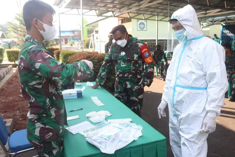 Cegah Covid 19 di Lingkungan TNI, Anggota Kodim 1206/PSB Laksanakan Tes Swab