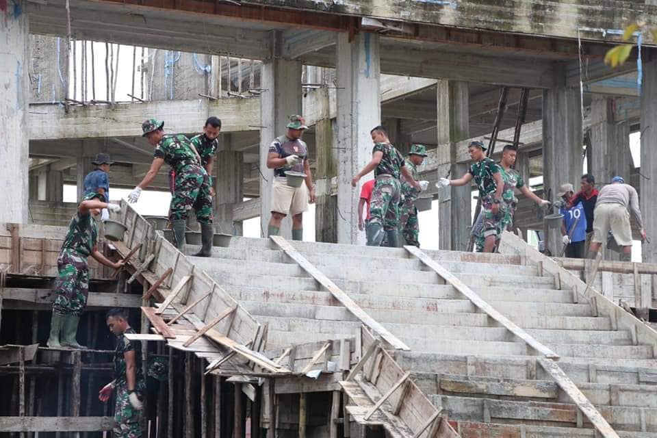 Kali ini anggota Kodim 1205/Sintang bersama dengan warga setempat melakukan pengecoran anak tangga sebelah kiri masjid, yang mana sebelumnya telah menyelesaikan pengecoran pada tangga utama.