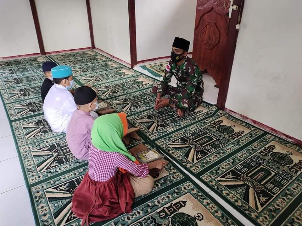 Kegiatan ini di pimpin Serka Eko dan satu rekannya,merupakan bentuk pembinaan teritorial kepada warga hingga menjadi Guru ngaji yang tidak jauh dari sekitar pos Muakan Ssk IV.dalam kegiatan ini selalu mematuhi protokol kesehatan untuk mencegah penyebaran Covid-19.(pen Yonif 144/JY)