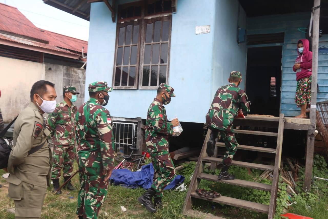 Putussibau – kodim 1206/Putussibau melaksanakan peninjauan di rumah warga yang melaksanakan isolasi mandiri serta memastikan warga yang di isolasi benar benar melaksanakan dengan sungguh sungguh demi menjaga kesehatan bagi warga yang lain
