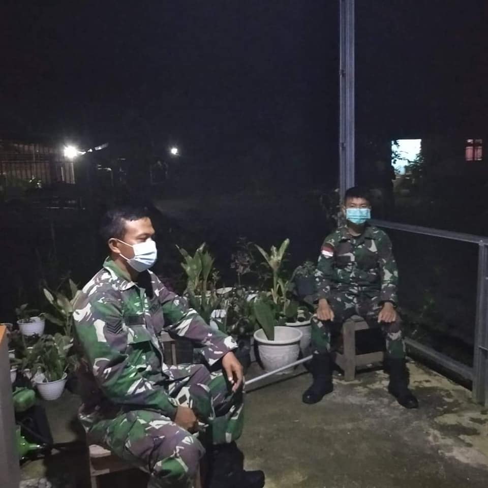 Putussibau – kodim 1206/Putussibau melaksanakan patroli malam dan melakukan peninjauan ke rumah warga yang melaksanakan isolasi mandiri serta memastikan warga yang di isolasi benar benar melaksanakan dengan demi menjaga kesehatan bagi warga yang lain