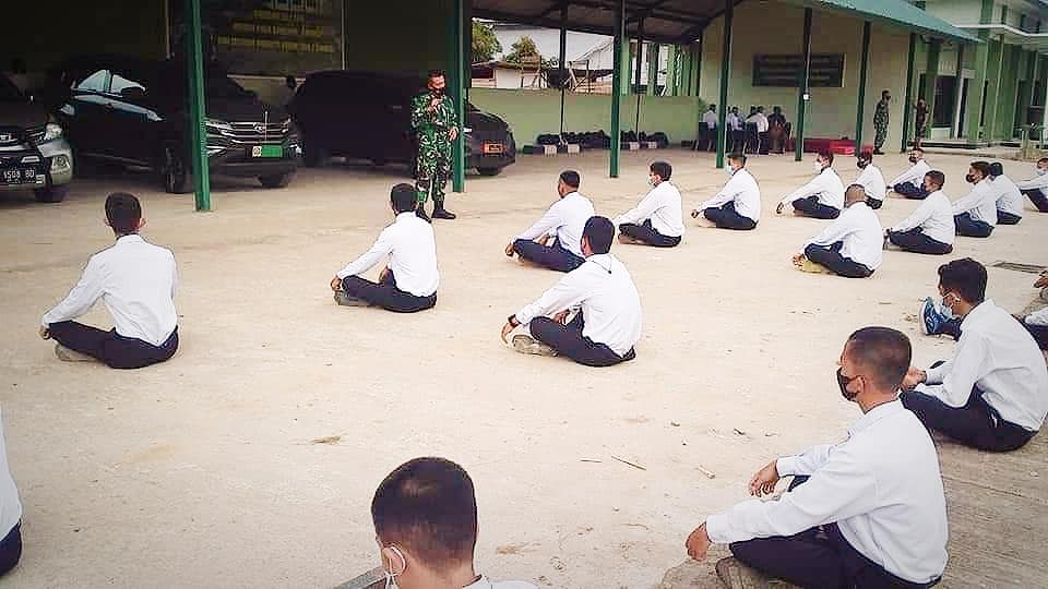 Sambas – Komandan Kodim 1208/Sambas Letnan Kolonel Inf Setyo Budiyono S.H., M. Tr (Han) memberikan pengarahan serta pembekalan kepada peserta seleksi Calon Bintara Prajurit Karier (PK) TNI Angkatan Darat (AD) tahun 2021, yang bertempat di Makodim 1208/Sambas Jalan Tabrani, Desa Lumbang, Kec. Sambas, Kab. Sambas, Jumat (6/8)
