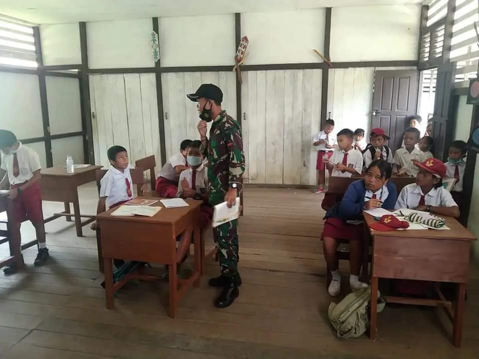 Pendidikan merupakan menjadi faktor utama yang sangat penting dalam menunjang kemajuan suatu bangsa, anggota Satgas kami menjadi tenaga pendidik di SD bakul mengajarkan matematika dan wawasan kebangsaan harapan nya anak-anak generasi penerus bangsa bisa menjadi harapan bangsa yang baik untuk kemudian hari,di tengah keterbatasan sarana prasarana sekolah”, ucapannya.