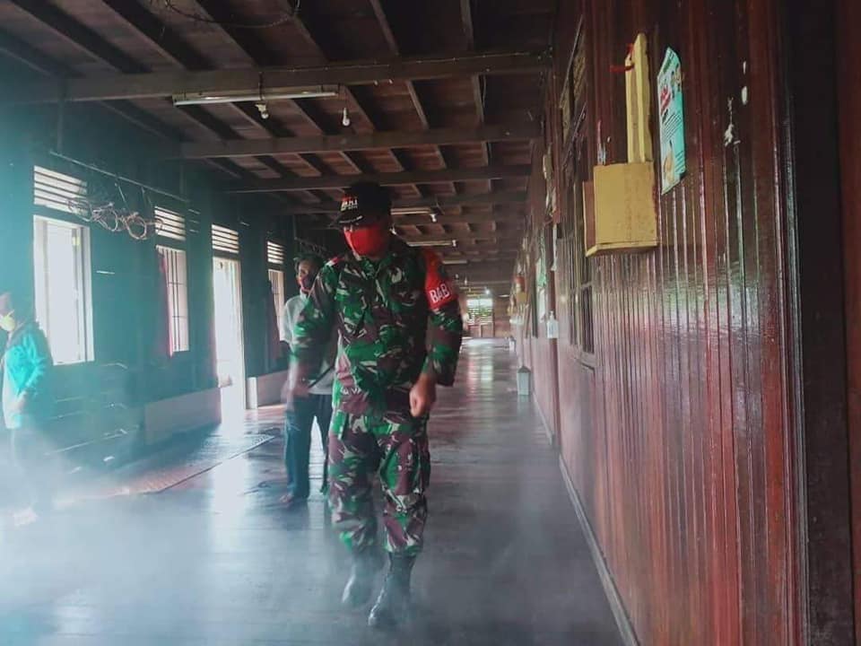 “Danramil 1206-05/Embaloh Hulu Mayor Inf Harsono mengatakan, kegiatan satgas gugus tugas Covid-19 ini setiap harinya melaksanakan pencegahan penyebaran virus Covid-19 di wilayah Kecamatan Embaloh Hulu. Selain melaksanakan penyemprotan cairan Disinfektan satgas gugus juga selalu menegakan protokol kesehatan Covid-19 kepada warga yang melanggar. Dan terus akan bekerja setiap harinya untuk membantu pemerintah pusat menuju Indonesia sehat.” Ucap Danramil. (Erk/1206).