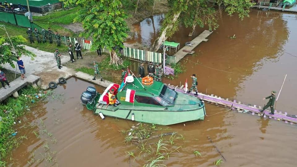 Sintang – Jenazah Sertu (Anummerta) Ambrosius Apri Yudiman pagi ini berangkat menuju ke rumah di Dusun Kadembak, Desa Senangan Kecil, Kec. Ketungau Tengah, Sintang melalui jalur air dengan menggunakan Speed Boat milik Kodim 1205/Sintang dari Lanting Humaniora, Minggu (4/09/2021).