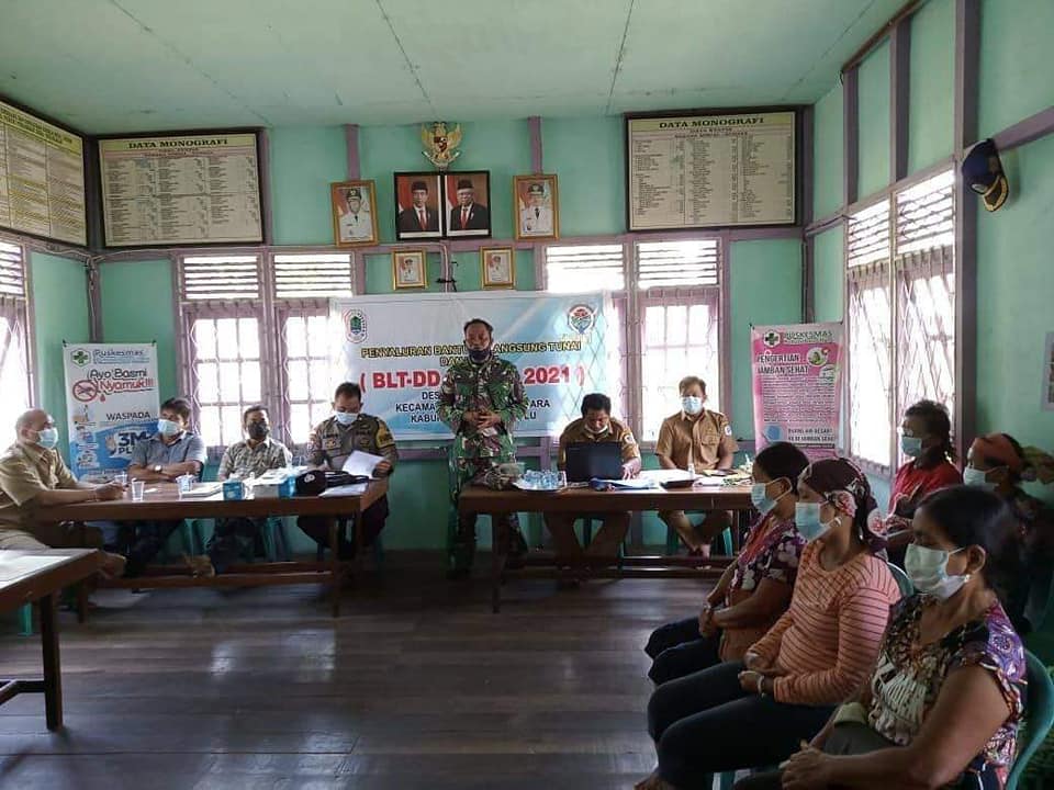 Danramil 1206-06/Psb Utara Kapten Inf Nanang Sundari mengatakan, Kepala desa bersama Babinsa 1206-06/Psb Utara beserta Tim Satgas Covid-19 Desa Tepuai Hulu membagikan BLT DD 2021 sebesar Rp 300.000 kepada warga kurang mampu dampak dari wabah Covid-19 yang tidak menerima PKH, BPNT dan KPE.