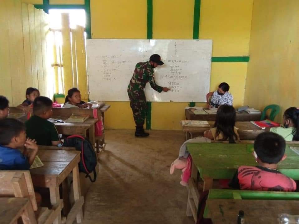 Minim nya tenaga pendidik bukan jadi penghalang atau penghambat untuk mencerdaskan anak bangsa di perbatasan anggota Satgas kami di Pos Sei Beruang, sebelum berangkat tugas Pam Tas RI-Malaysia kami sudah dipersiapkan di satuan sehingga kesempatan ini kami tidak sia-siakan untuk membantu sekolahan menjadi Tenaga pendidik”, Ujarnya.
