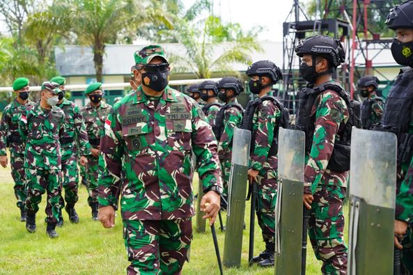 TNI dalam hal ini Korem 121/Abw siap membeckup Kepolisian Kalbar dalam rangka penegakan hukum di wilayah Korem 121/Abw. Saya mengecek secara langsung kesiapan pasukan Yonif 642/Abw dan juga sarana prasarana yang digunakan, apabila nanti ada permintaan dari Polda kita sudah siap. Perhatikan faktor keamanan, baik personel maupun material,” ungkapnya.