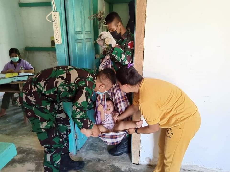 Bantu Berikan Imunisasi di Perbatasan, Satgas Yonif Mekanis 643 Turunkan Personel