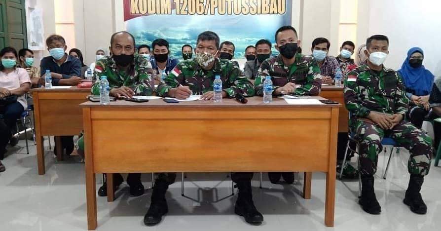 Putussibau – Kepala Staf Kodim 1206/PSB Mayor Inf Agus Jaelani bersama 12 orang tua calon Bintara PK TA. 2021 mengikuti Video Conference Pengarahan Asisten Personil (Aspers) Kasdam XII/TPR di Aula Makodim 1206/Putussibau, Kamis (09/09/2021).
