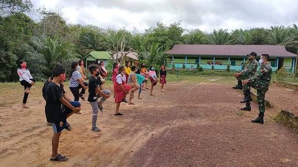 Pratu Dedi Susanto dan dua rekannya dari Pos Sei Tekam mengajarkan ke anak-anak Senam dan Berolahraga,dengan jiwa raga yang sehat harapan nya anak-anak SD N 25 ini,bisa lebih bersemangat dalam menuntut ilmu di perbatasan ini”, ujarnya.