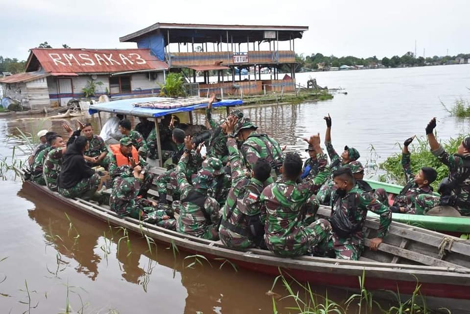 Dengan menggunakan Speed Boat, anggota Satgas berangkat menuju lokasi melalui jalur air.