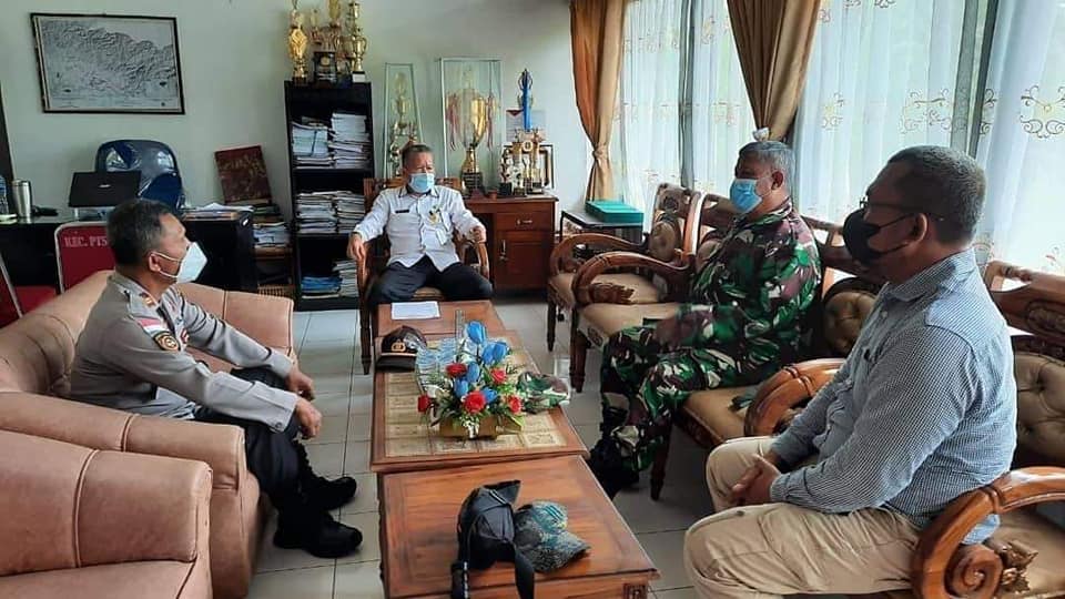 Putussibau – Guna terciptanya situasi kamtibmas tetap aman dan kondusif di Wilayah Putussibau, Danramil 1206-06/Putussibau Utara Kapten Inf Nanang Sundari, Kapolsek Putussibau Utara Iptu Sutikno mendatangi Camat Putussibau Utara Rusdi Hartono S.P, M.M untuk menjalin silaturahmi kamtibmas dalam rangka cipta kondisi keamanan khususnya di wilayah Kecamatan Putussibau Utara, Kamis (16/09/2021).