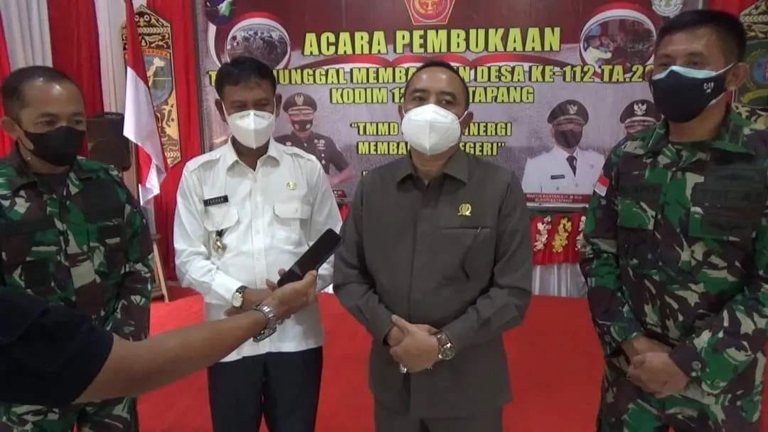 Hal ini disampaikanya usai Acara Pembukaan TMMD Reguler Ke-112, Kodim 1203/Ketapang, Ketua DPRD Kabupaten juga mengungkapkan bahwa kegiatan tersebut menunjukan TNI selain sebagai alat negara yang tugasnya memikul senjata untuk berperang melawan musuh dan mempertahankan keutuhan NKRI, juga sebagai mitra pemerintah dalam membangun ketahanan wilayah di seluruh Indonesia,” ungkapnya.
