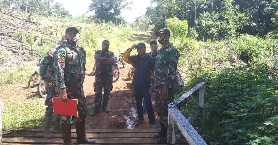 Putussibau – Kepala Staf Kodim 1206/Putussibau Mayor Inf Agus Jaelani terjun langsung ke lokasi bakal sasaran TMMD yang di dampingi Kades Kensurai dan Bahenap, serta beberapa Anggota serta Aparat pemerintah Desa.