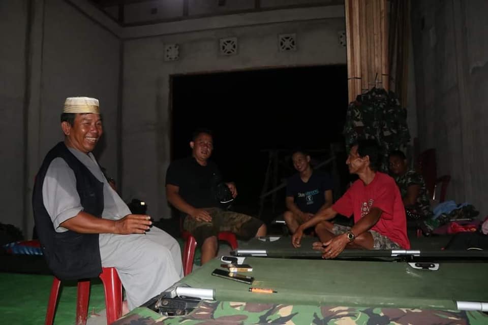 Oskarman, salah satu warga Dusun Betung Sari hampir tiap malam berkunjung ke Posko Satgas TMMD yang sementara menghuni di bangunan Masjid yang belum jadi.