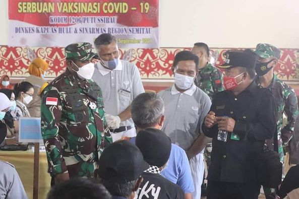 Kapuas Hulu – Kodim 1206/PSB yang di pimpin langsung Dandim Letkol Inf Jemi Oktis Oil S.I.P malaksanakan serbuan vaksinasi di perusahaan sawit Sinarmas Region Semitau, Kecamatan Semitau, Kabupaten Kapuas Hulu, Provinsi Kalimantan Barat. Sabtu, (18/09/2021).